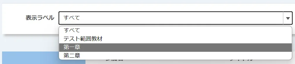 - ラベルを付与すると,「コーストップ」画面で以下のようなドロップダウンリストが表示され,履修者・教員の双方がラベル毎にコンテンツを表示できます.