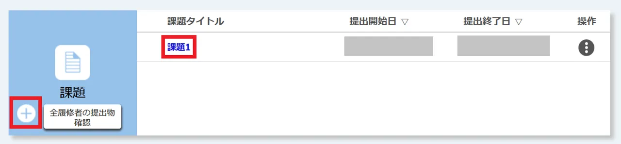 2. 新しく課題を登録する場合は,「課題」欄の左下の「+」マークを押してください.すでに登録された課題を編集する場合は,「課題」欄のうち編集したい課題名を押してください.